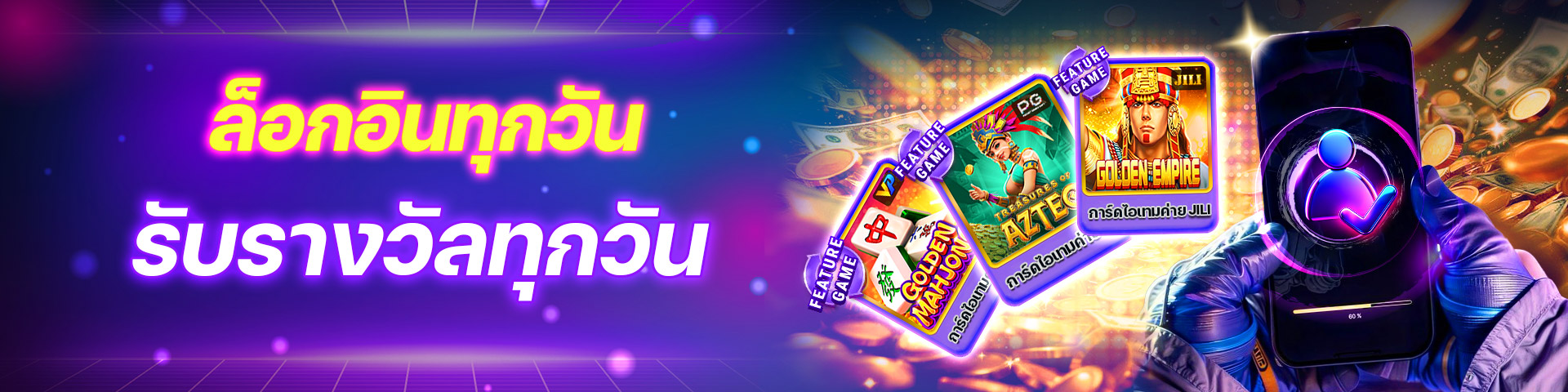 - โปรโมชั่นเช็คอินเพียงแค่เช็คอินเข้าเล่นเกมรับโบนัสสูงสุด 2,500 บาททุกสัปดาห์